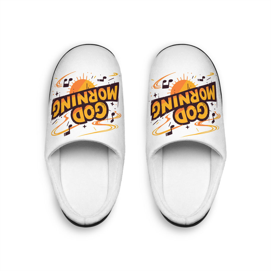 ‘God Morning’ Men’s Indoor Slippers — Cozy Sunrise Graphic Slip-Ons